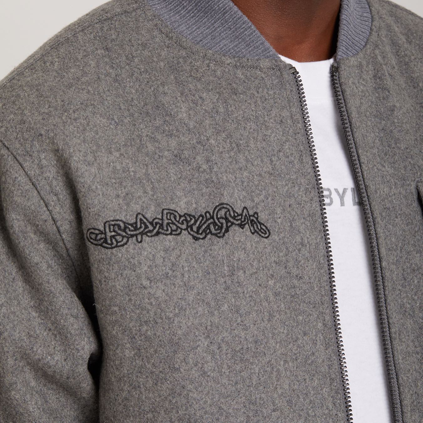 Chaqueta tipo Bomber, bolsillos laterales y en manga, detalles bordados, cierres tipo YKK.  Nueva con etiquetas.